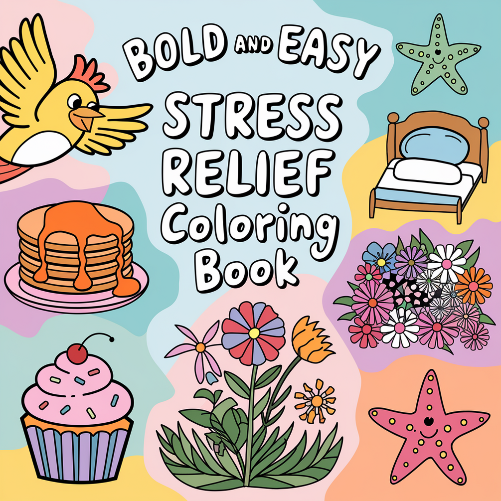 This Bold and Easy Stress Relief Coloring Pages bundle features over 80+ pages of beautifully simple and stress-relieving designs for effortless relaxation and enjoyment. From calming animals, delightful food, cozy living scenes, and charming desserts to vibrant flowers and adorable objects, each page invites you to unwind and bring these delightful illustrations to life with your artistic touch. Whether you’re a beginner or an experienced colorist, you’ll enjoy the therapeutic ease of these enchanting pages.